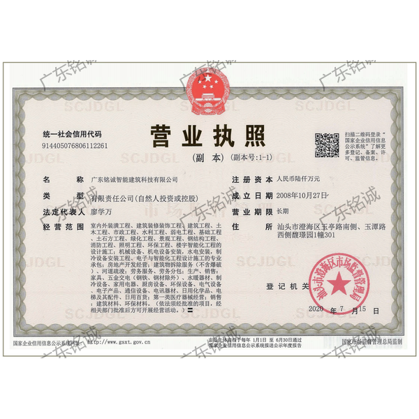 廣東銘誠智能建筑科技有限公司成立于2008年,公司注冊資金為6000萬元,集辦公裝修、酒店裝修、家庭裝修、軟裝裝飾、娛樂場所裝修為一體的裝飾公司,率先提出“創(chuàng)造現(xiàn)代人文空間,挑戰(zhàn)業(yè)界高峰”的雄壯口號,并以此為目標,完成了一大批具有影響力的大型公裝工程:其中包括廣州國際中醫(yī)藥展貿(mào)中心、奧飛澄海音樂廳、澄海區(qū)國家稅務局、澄海興信小額貸款、澄海潮商村鎮(zhèn)銀行、汕頭龍湖賓館、澄海豪庭大酒店、御園國際飲食城、澄海福晉軒酒家、享樂匯保健有限公司、假日商務酒店、尚景康園物業(yè)、星輝車模股份有限公司、奧飛動漫有限公司、香港國際玩具、汕頭萬基貿(mào)易有限公司、泰興源實業(yè)有限公司、汕頭皇冠玩具有限公司等;家裝工程包括南澳黃金海岸整幢的精裝房、中信華府、富春華庭、金信鳳凰名城、凱旋花園、中信金城、柏嘉半島、陽光海岸、金葉島等高等住宅。 ? 廣東銘誠智能建筑科技有限公司經(jīng)過十余年的建筑裝飾裝修施工領域項目積淀,于2018年2月取得“建筑裝修裝飾工程專業(yè)承包二級”、“建筑機電安裝工程專業(yè)承包三級”、“建筑工程施工總承包三級”、“施工勞務不分等級”、“安全生產(chǎn)許可證”等專業(yè)資質(zhì),并于2021年8月建筑裝修資質(zhì)正式升級為“建筑裝修裝飾工程專業(yè)承包一級”。這是對企業(yè)規(guī)模、工程業(yè)績、管理水平、誠信表現(xiàn)的肯定,是企業(yè)實力與能力的展現(xiàn)。 ? 公司每一項工程都始終堅持“精美設計、精心施工、確保合同承諾;勤奮開拓、追求突出、創(chuàng)造時代精品”的質(zhì)量方針,力爭做一項工程,樹一座豐碑。 ? ?銘誠擁有一支由專業(yè)的營銷精英和客戶顧問組成的營銷隊伍,勤奮、敬業(yè)的每一位銘誠員工將本著“贏在別人休息時”的專業(yè)精神,為客戶提供全程營銷及售后服務,確??蛻舻暮戏ɡ?,提供體貼周到的服務,做到讓顧客滿意。 ? 銘誠擁有一批資老牌室內(nèi)環(huán)境設計師,以“現(xiàn)代人文空間”為設計理念,為客戶提供人性化、差異化、智能化的室內(nèi)環(huán)境設計服務,準確的將人性化特點與室內(nèi)環(huán)境相融合,達到了“現(xiàn)代人文空間”的和諧統(tǒng)一。 ? ? ? ?自主創(chuàng)新、視社會責任為己任的精神使我們在發(fā)展的道路上屢獲殊榮:不斷提升的銘誠品牌知名度和美譽度,靠的是優(yōu)質(zhì)的產(chǎn)品,靠的是不斷提升的營業(yè)績,靠的是國內(nèi)的核心技術和誠信的服務。相信通過銘誠人的努力,銘誠將會不斷以新的姿態(tài)為提升廣大消費者的生活質(zhì)量做好服務,為中國裝飾行業(yè)設計創(chuàng)新做出突出貢獻。 ? ? “忘掉競爭、共